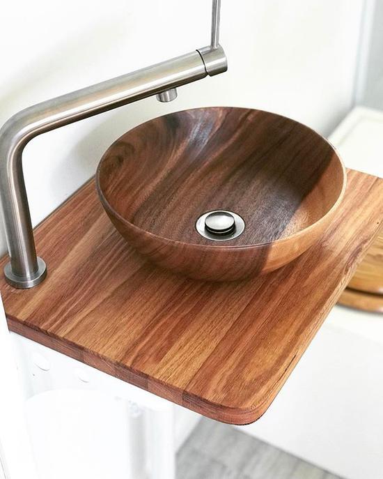 厕所门前的盥洗台是她用砧板和沙拉碗改造而成的,它们或许不完美、有着各种小瑕疵,却处处体现着Dolly的用心。