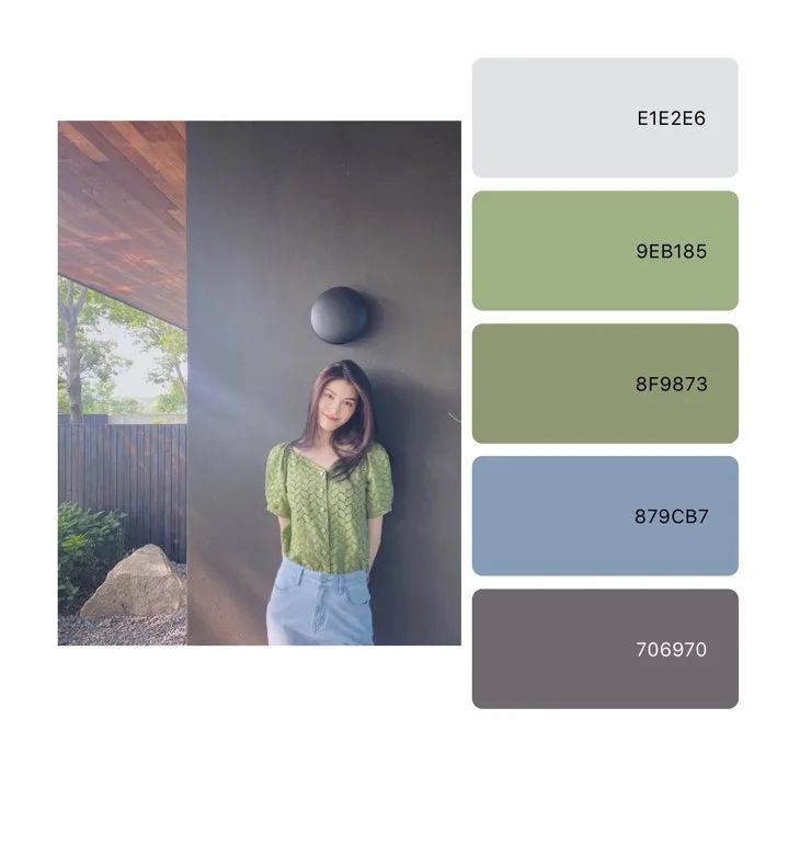 灰+蓝:是一种静谧且高级的色彩组合,很适合夏季简单的穿搭。