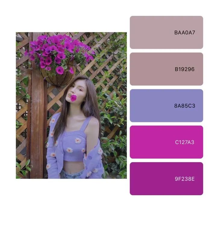 黄+紫:大自然馈赠的黄色调是“阳光下的金子”,给软糯的紫色增添了强有力的温度,成片高级大气的同时也很有亲和力。